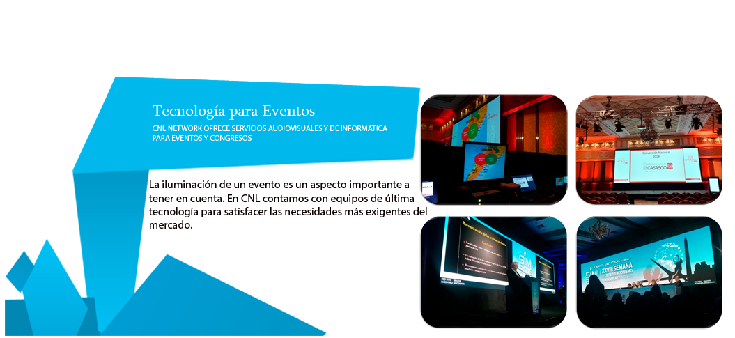Iluminación con Tecnología de LED, ideal para perimetral de salón, ambientaciones puntuales, iluminación de carteles, de estrado, imagen orador y de escenarios.